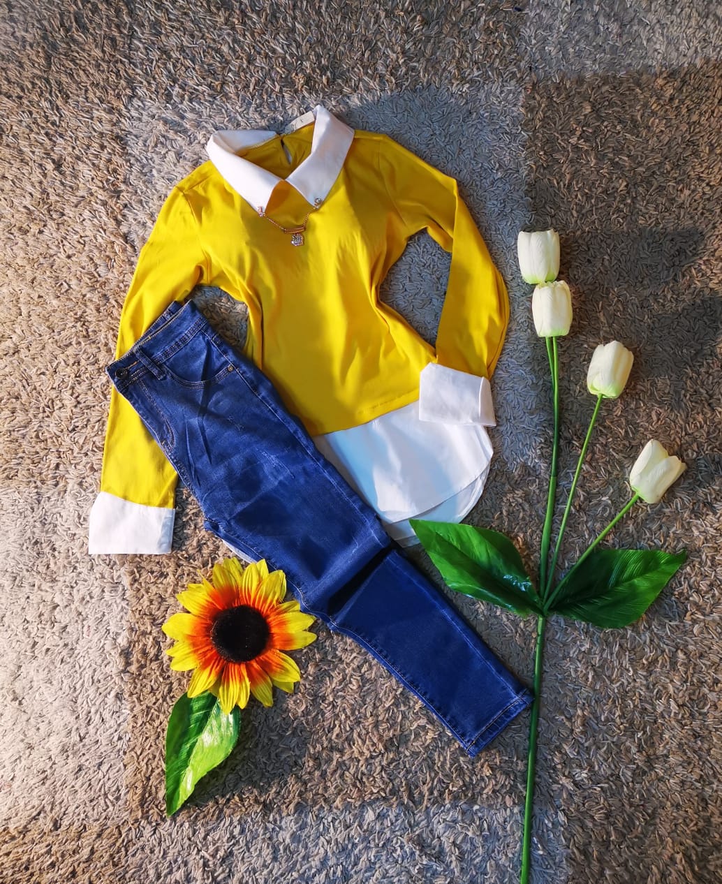 Girasol Hermoso conjunto Blusa cola de pato, pantalón y chaqueta en tallas sm ml lxl $75,00 $0,00 Ver detalles